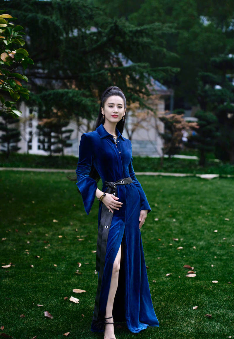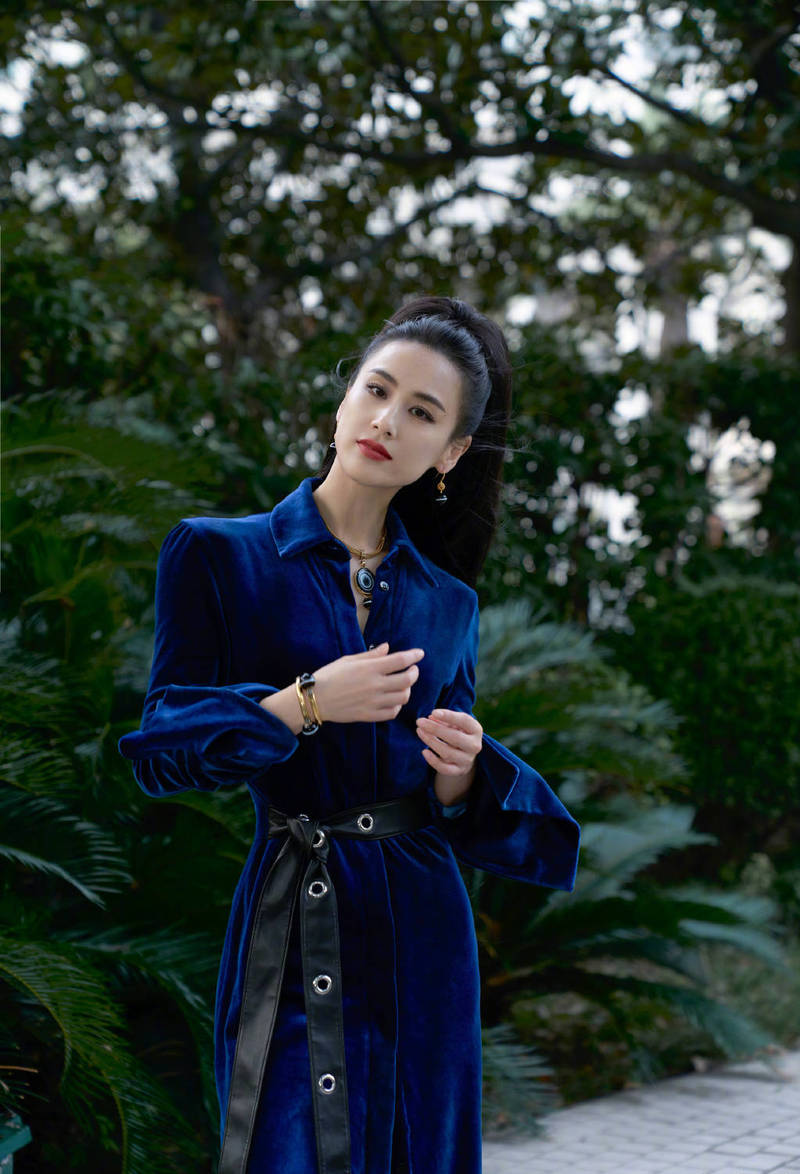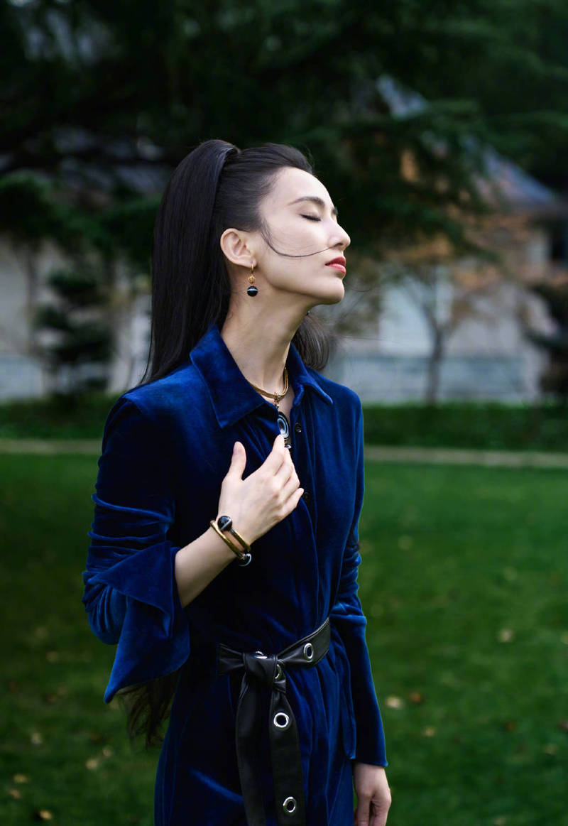 近日,黃圣依(明星經(jīng)紀(jì)公司)曬出一組室外草地寫真。黃圣依身穿藍(lán)色冰染天鵝絨長裙,高馬尾利落帥氣,烈焰紅唇,女王氣場十足。