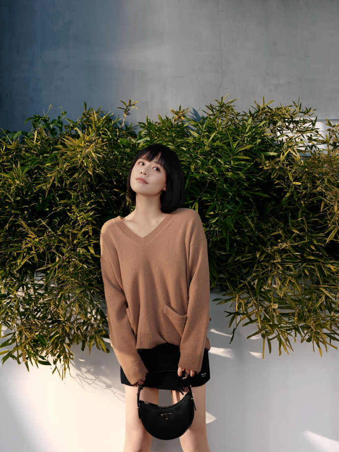 馬思純曬短發(fā)造型深秋隨拍 穿咖色毛衣又暖又治愈
