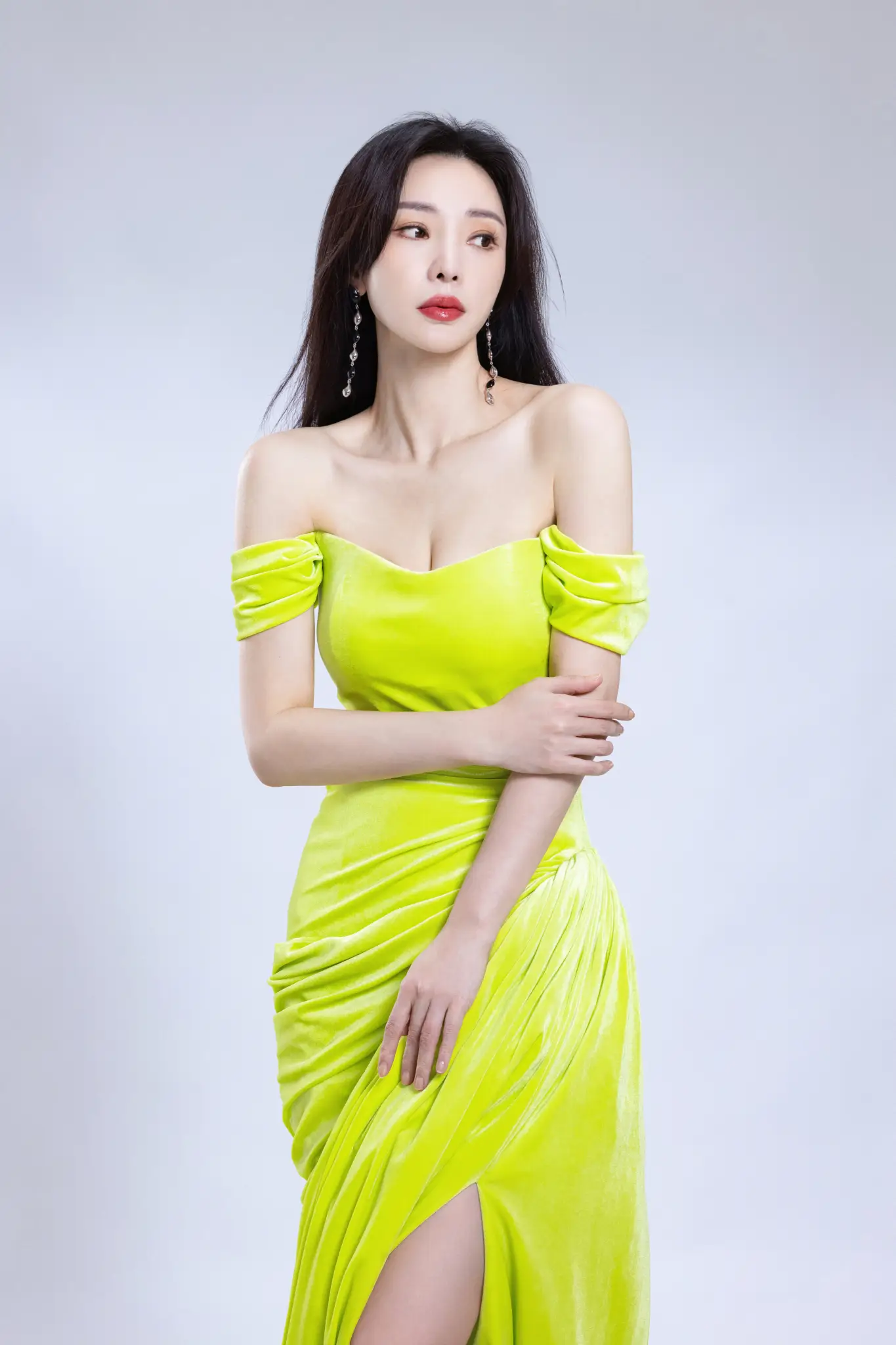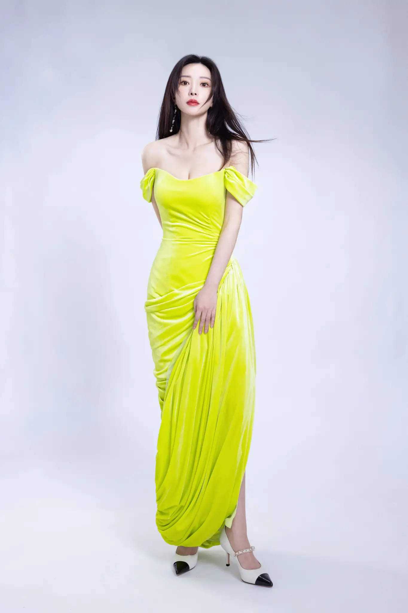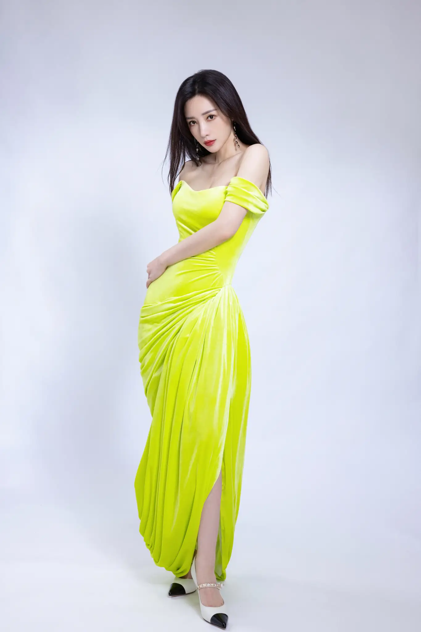曬出自己穿檸檬黃裙子的寫真照,抹胸裙遮不住柳巖的好身材。