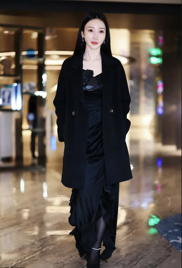 柳巖結(jié)束錄制現(xiàn)身酒店,著黑色系裙裝氣場十足。