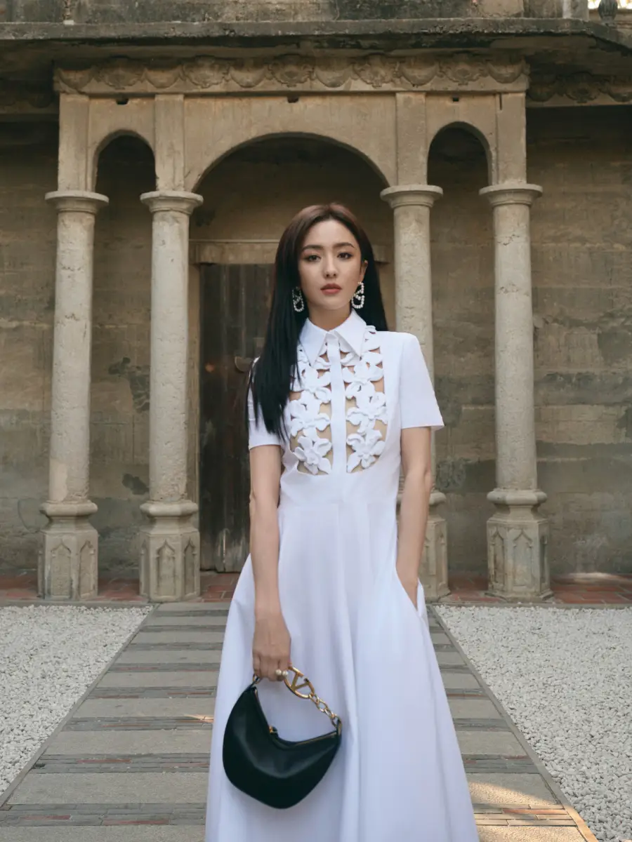 3月26日,佟麗婭(明星經(jīng)紀(jì)公司)工作室發(fā)布了一組美照。照片中佟麗婭身穿鏤空白裙,戴大耳飾看起來張揚(yáng)又迷人。