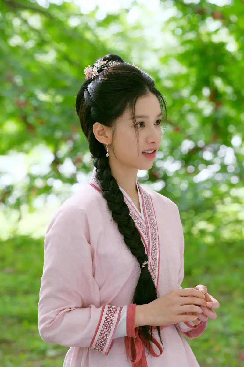 4月4日,張婧儀在新劇中的古裝造型曝光,照片里的她扎側(cè)麻花辮,容顏清麗,十分漂亮。