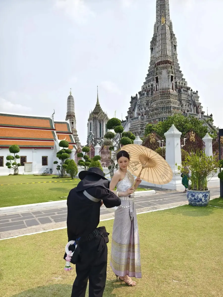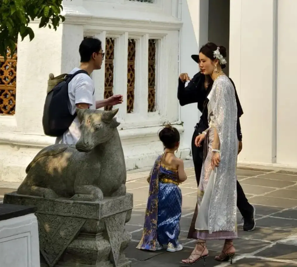 林峯、張馨月一家三口在泰國度假,母女倆穿泰服好漂亮!