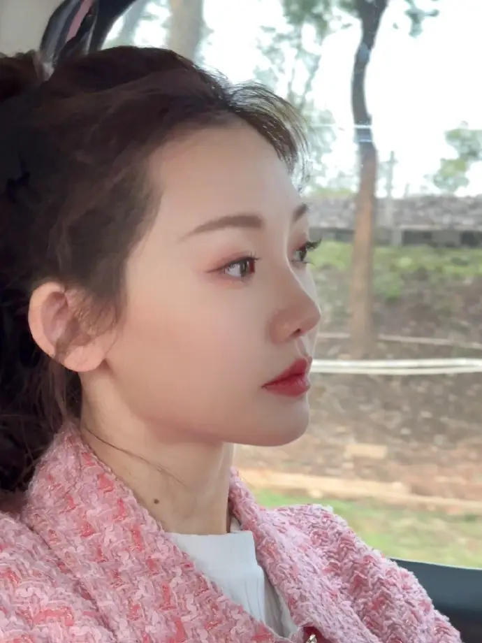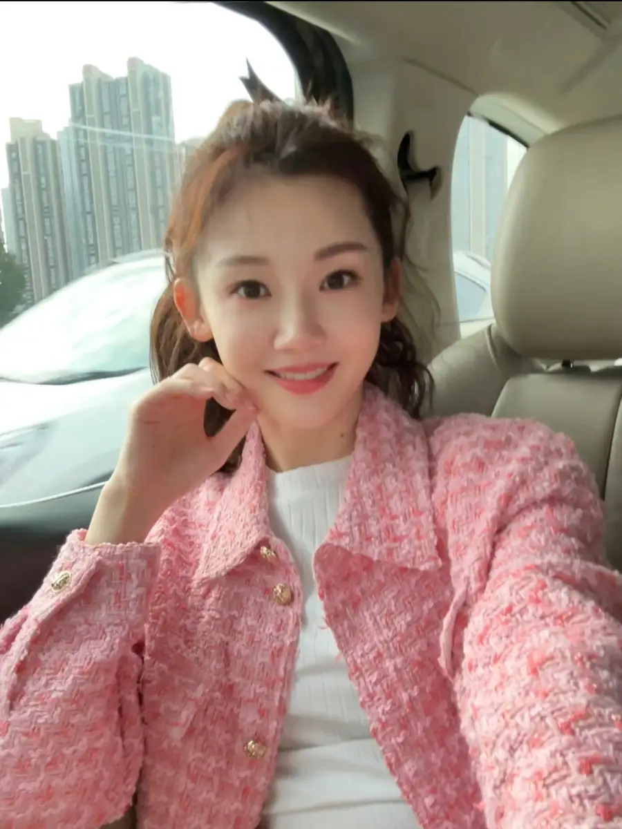 在社交平臺曬出一組自拍,穿粉色小香風外套,春日氣息滿滿。