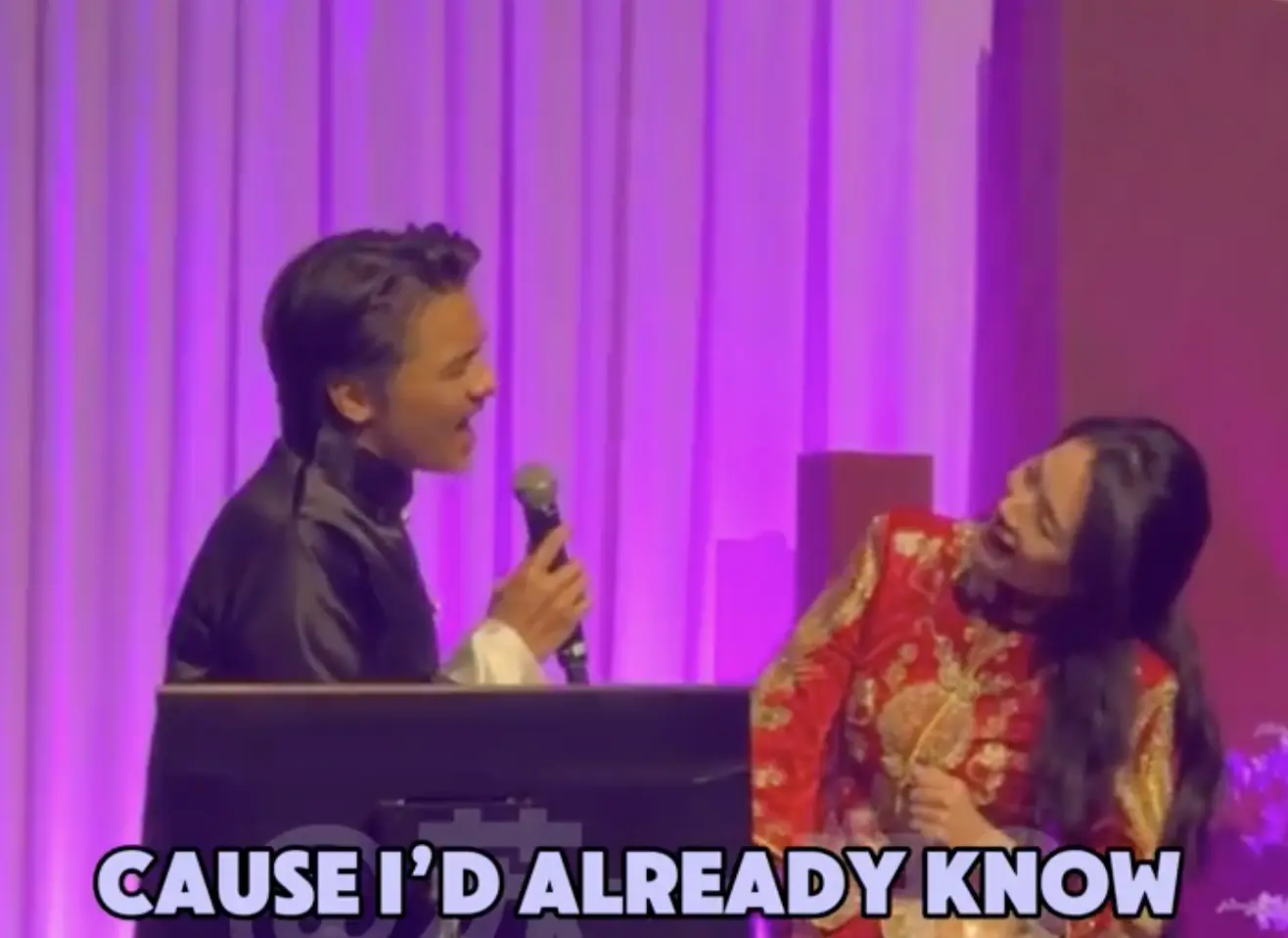 二人互相神情對視唱情歌,好羨煞旁人的一對!