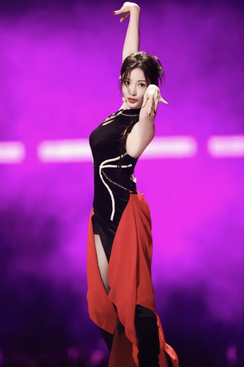 4月19日,柳巖穿旗袍搖扇翩翩起舞,黑紅配色美艷十足,緊身剪裁盡顯完美身材,姿態(tài)輕盈婉轉(zhuǎn),奪目靚麗。