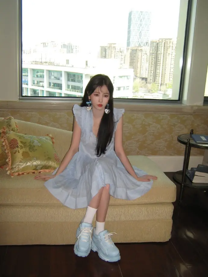 4月22日,虞書欣工作室發(fā)布了一組夏日大片,身穿藍(lán)色連衣裙的虞書欣元?dú)鉂M滿。