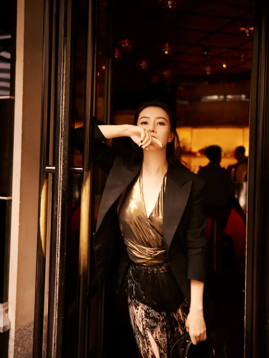高圓圓穿西裝干練優(yōu)雅,五官精致下頜線非常清晰。