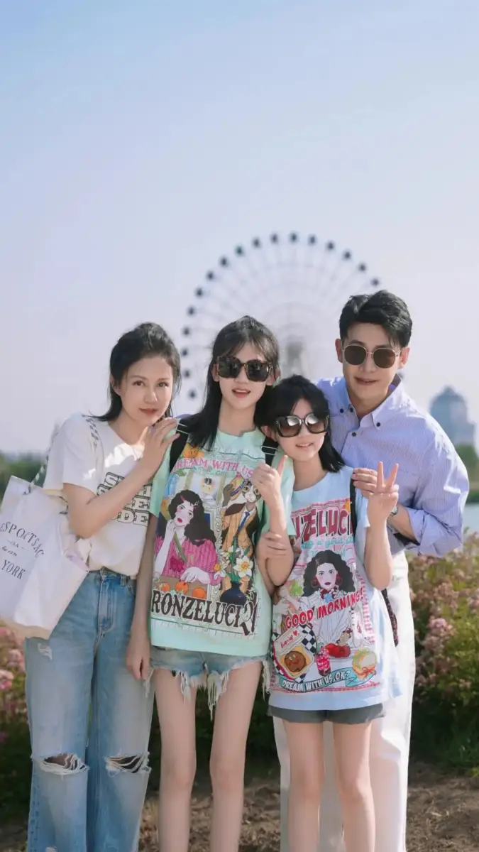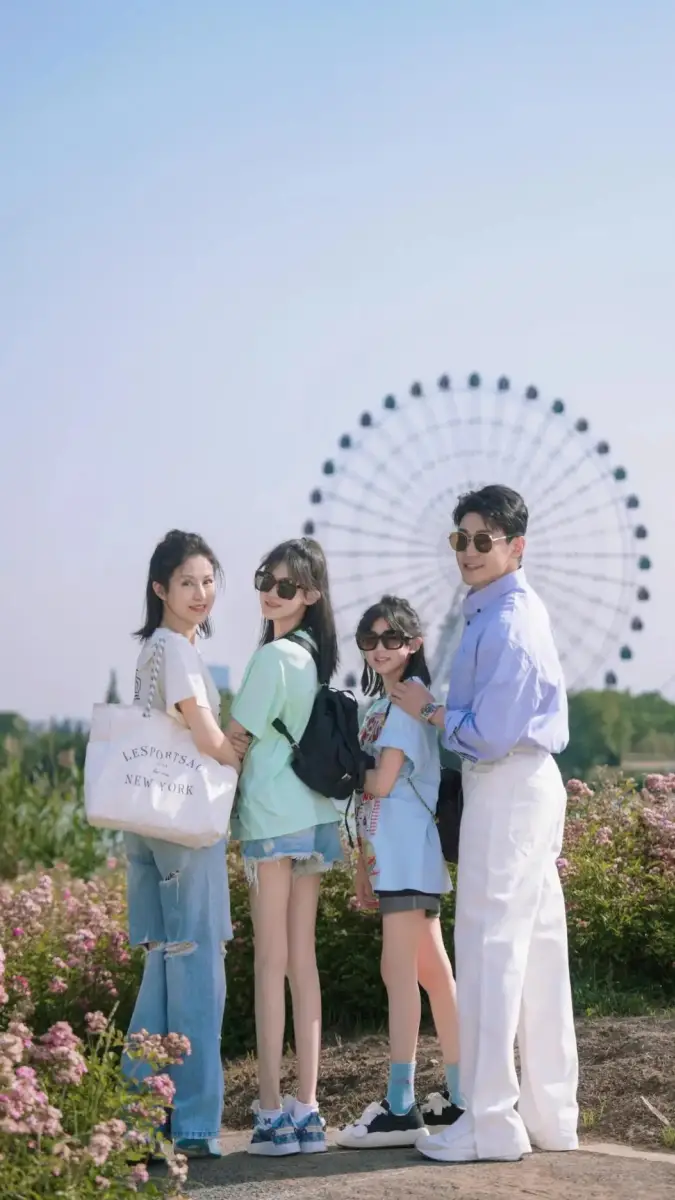 近日,陸毅、鮑蕾一家四口外出游玩的照片曝光,他們一家人站在摩天輪和一片花海前拍照,景色好美!大女兒貝兒和二女兒小葉子同款大長腿超搶鏡。