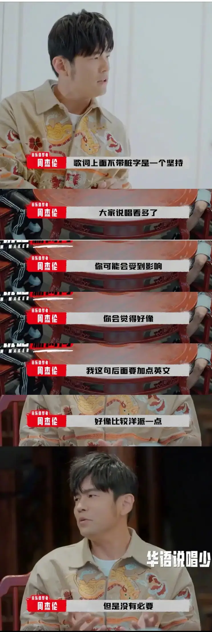 周杰倫談對中文說唱的態(tài)度:歌詞不帶臟字,沒必要特意加英文