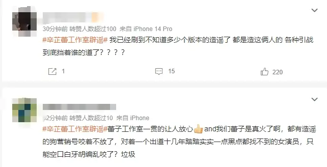 還有網(wǎng)友表示:“我已經(jīng)刷到不知道多少個(gè)版本的造謠了,都是造這倆人的,各種引戰(zhàn),到底擋著誰(shuí)的道了?”
