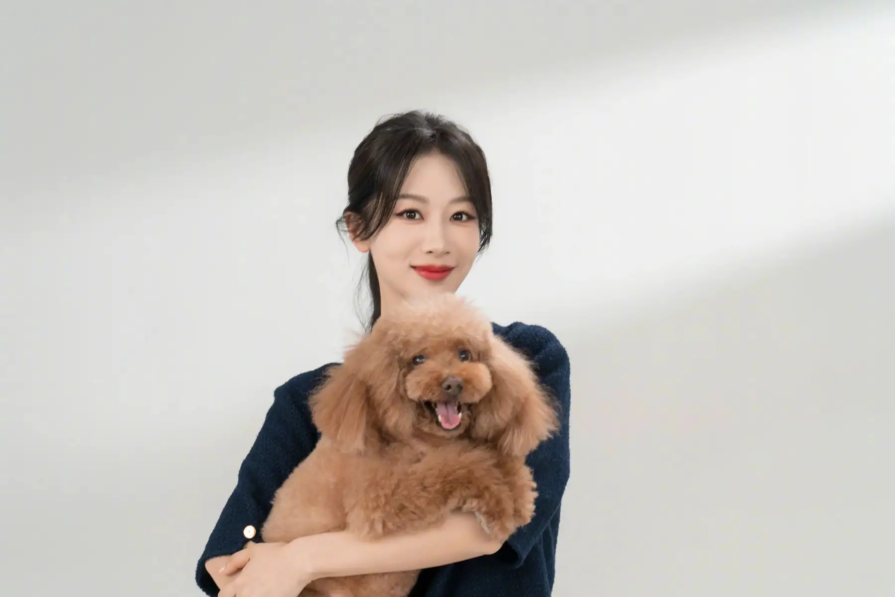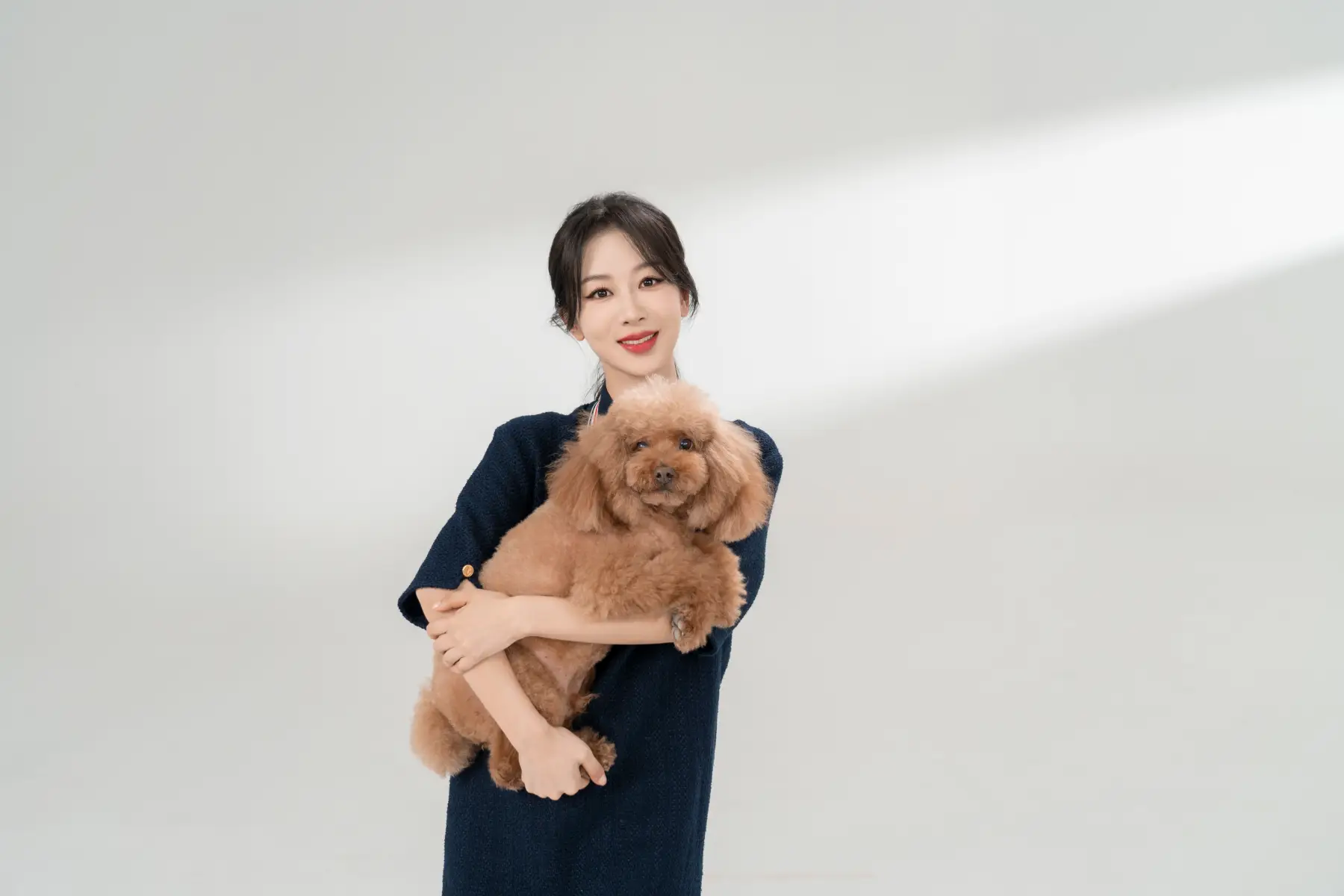 楊紫懷抱寵物狗滿滿鄰家感。