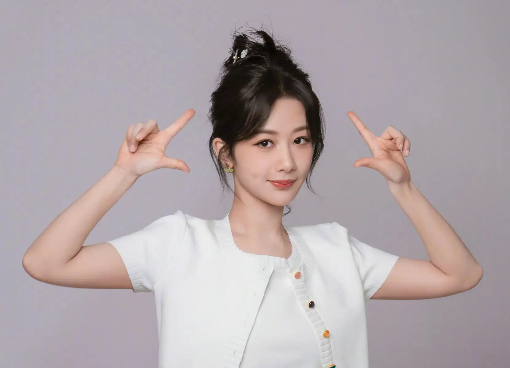 楊紫丸子頭發(fā)型靈動可愛。