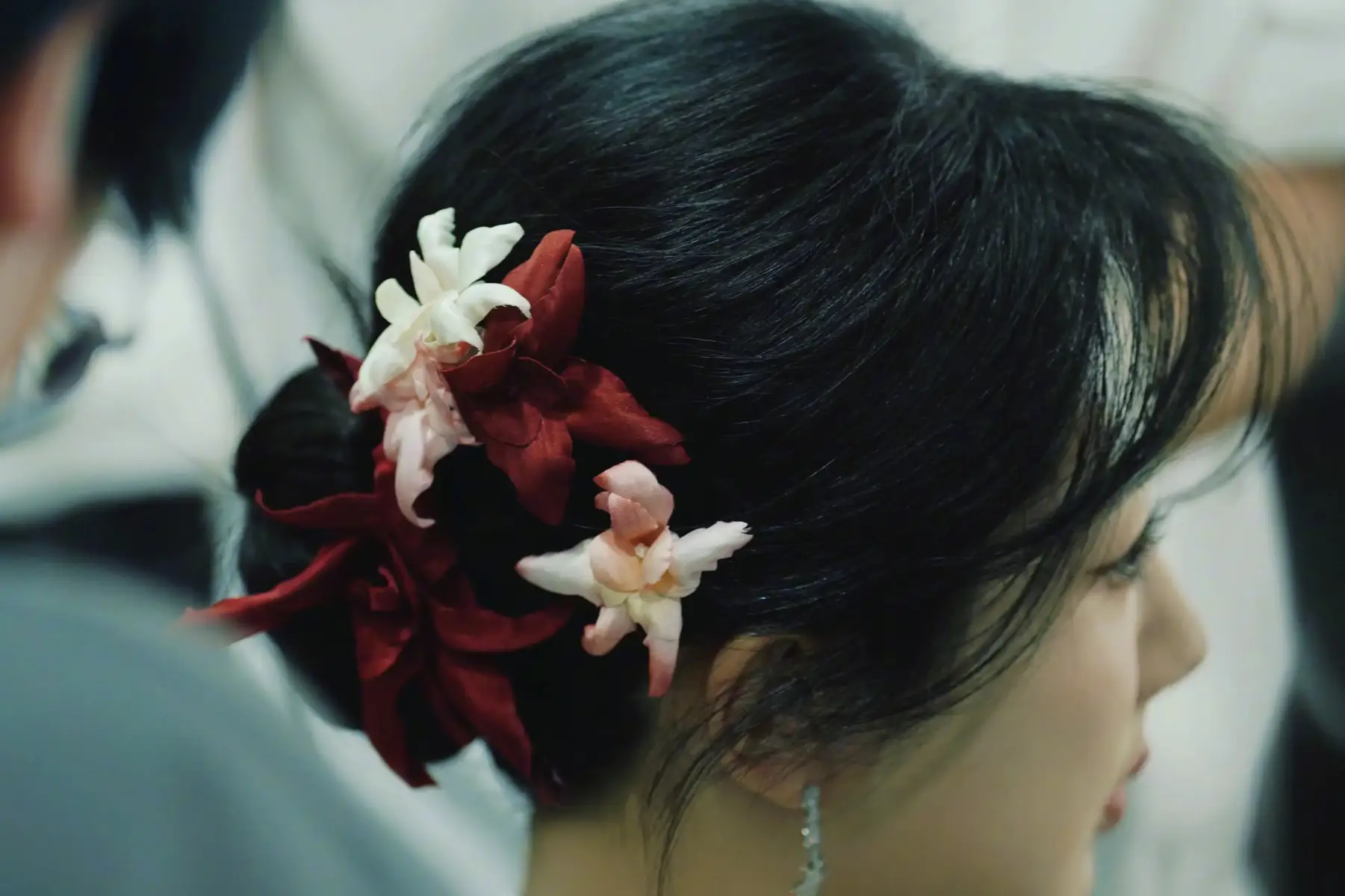 楊紫花朵盤發(fā)背影端莊優(yōu)雅。