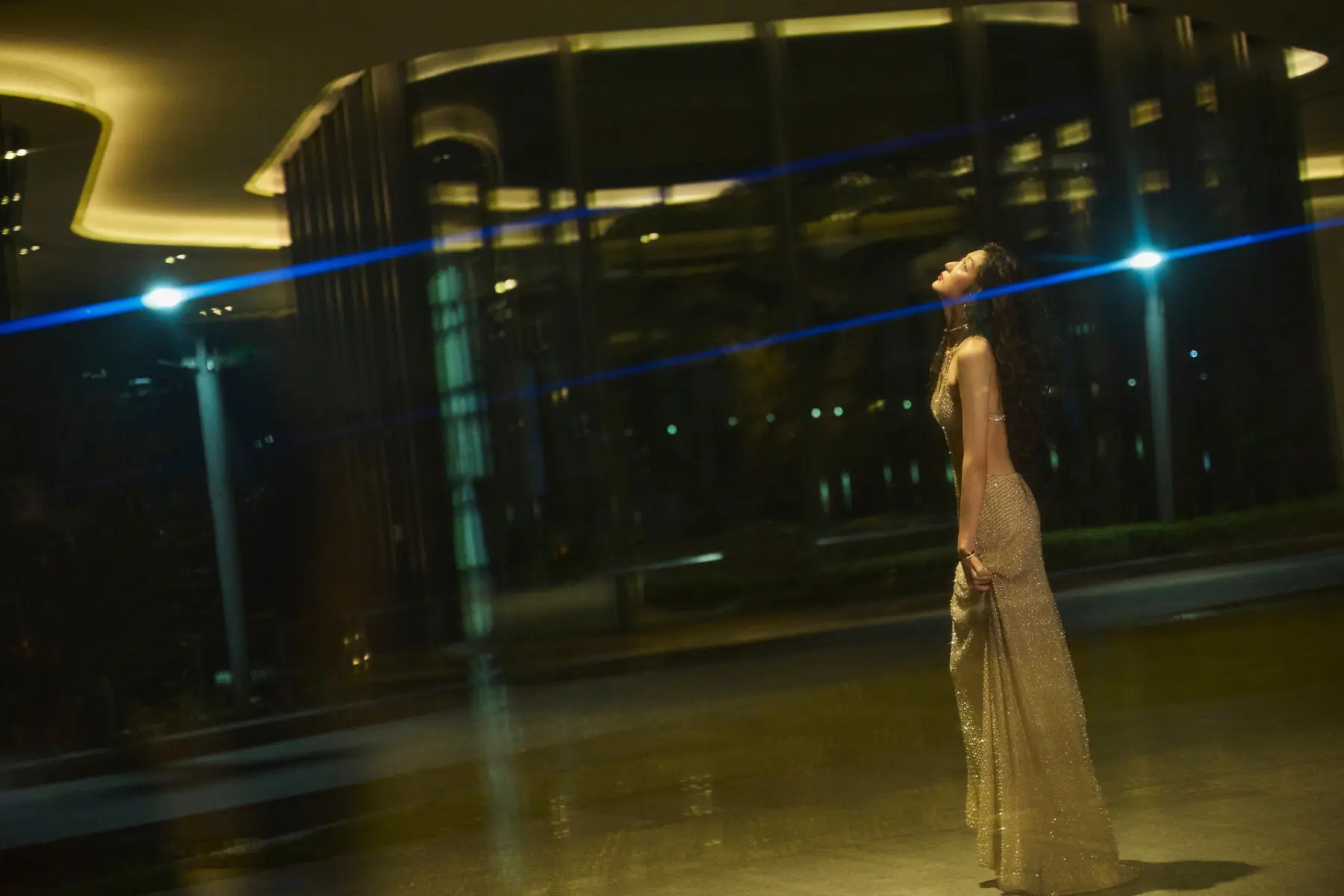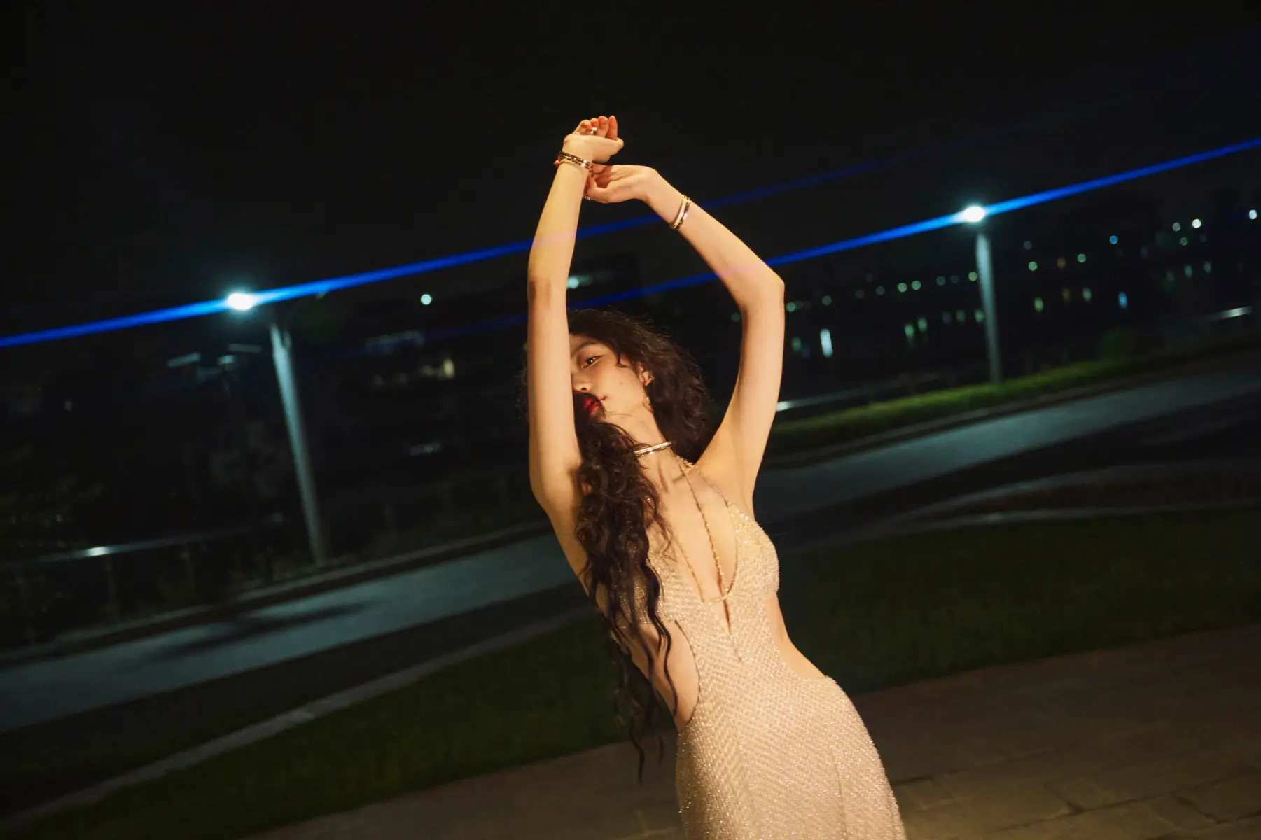 孫千走在黑夜里,抬頭看著天空,非常有青春小說女主角的feel!