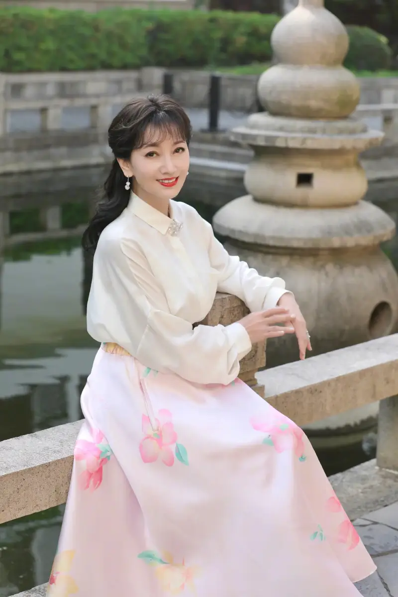 趙雅芝仰頭看天,儀態(tài)優(yōu)雅迷人。