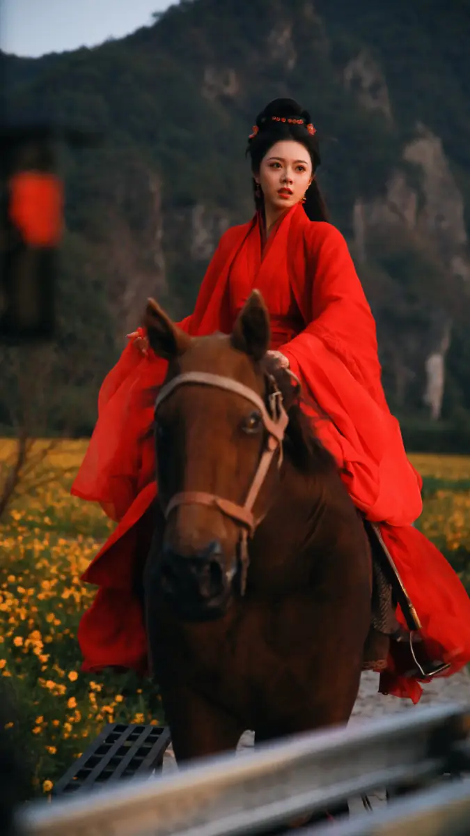 7月5日,趙今麥(明星經(jīng)紀(jì)公司)工作室發(fā)布一套組圖,照片中趙今麥身著紅色古裝騎馬,眼神堅(jiān)定。