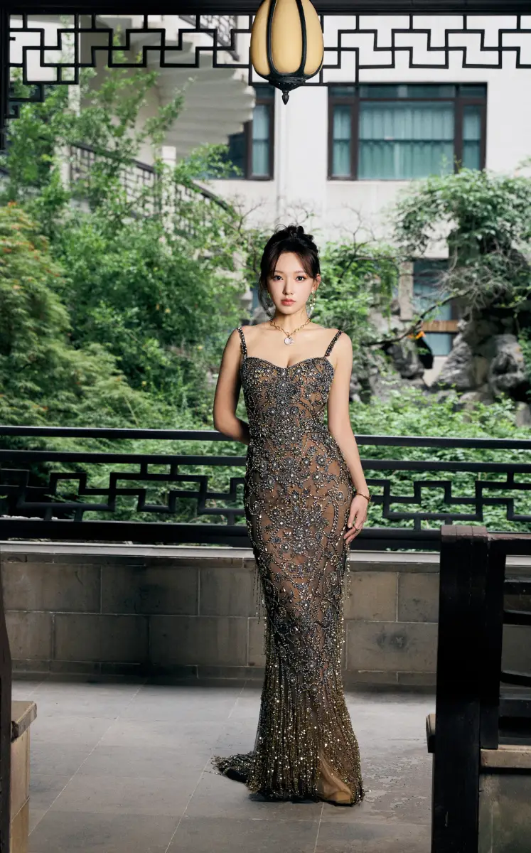 程瀟穿碎鉆透視裙秀曲線 古典婀娜訴說夏日盎然