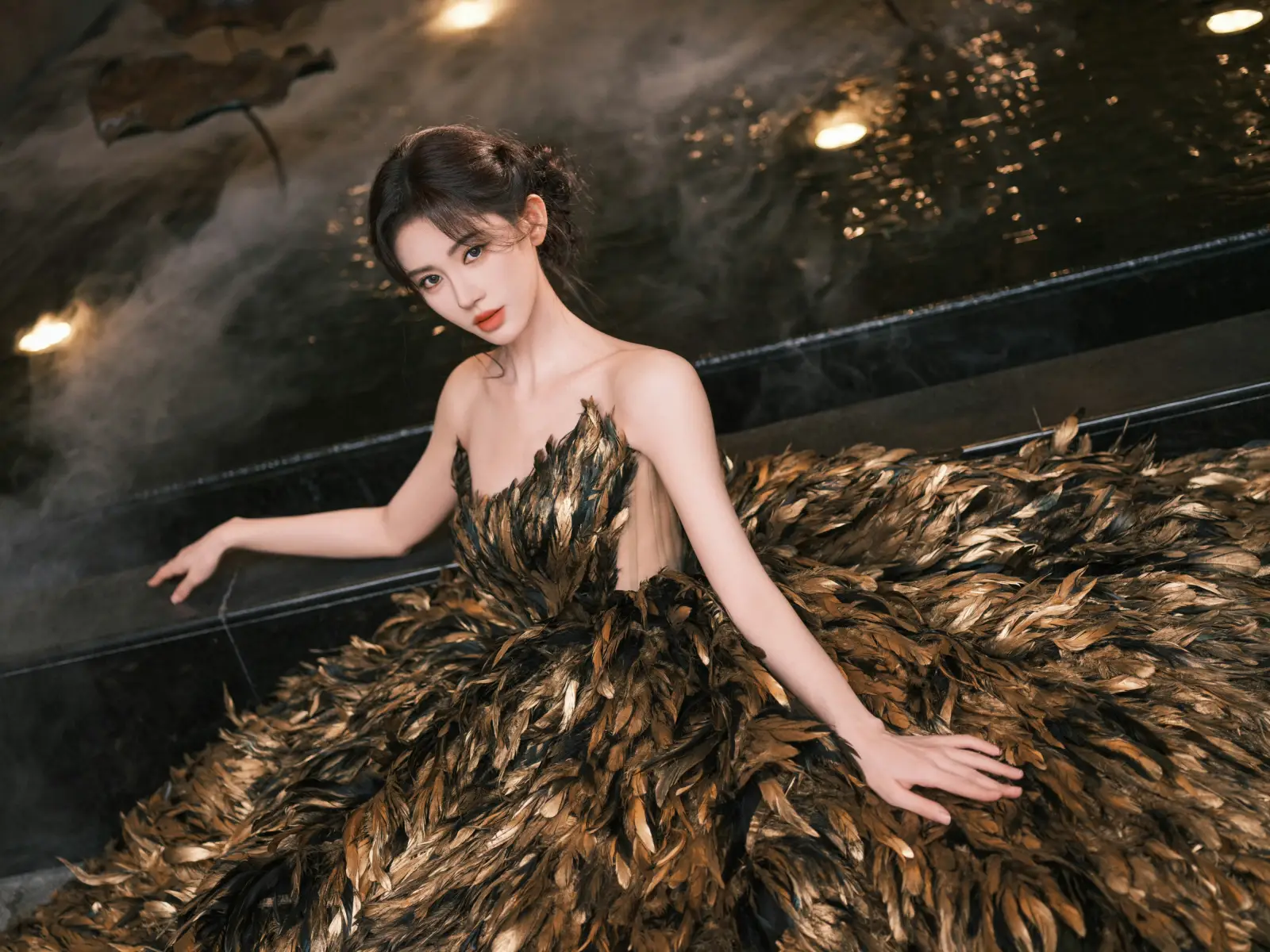 7月10日,鞠婧祎(明星經(jīng)紀公司)office發(fā)布一套組圖。照片中,鞠婧祎身著黑金色羽毛點綴的抹胸大擺晚禮服,露出纖長的脖頸和手臂,身姿優(yōu)美氣質(zhì)高貴。