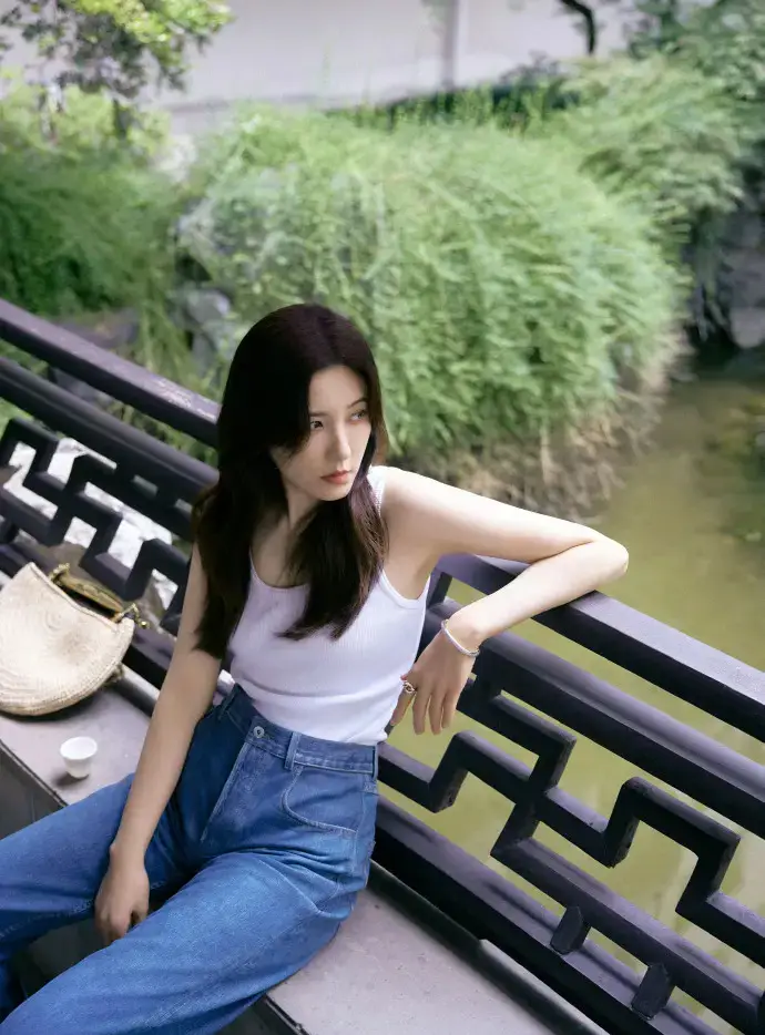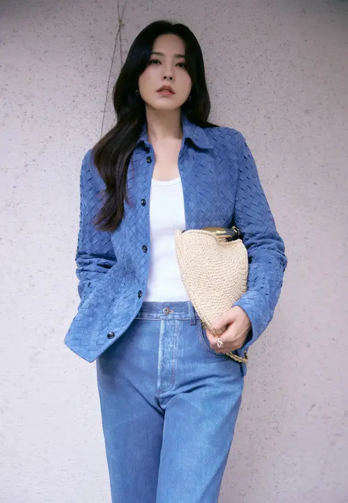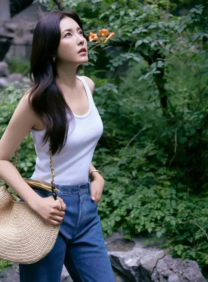 曾黎時(shí)尚感十足,和牛仔套裝適配度拉滿。