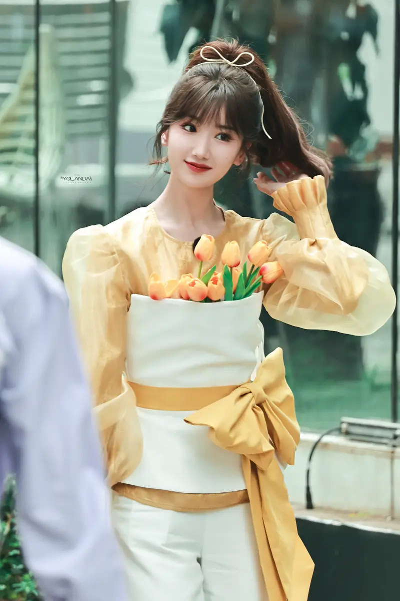 近日,毛曉彤(明星經(jīng)紀(jì)公司)在綜藝中的一組黃色郁金香造型釋出,胸前插滿鮮花甜美動(dòng)人。
