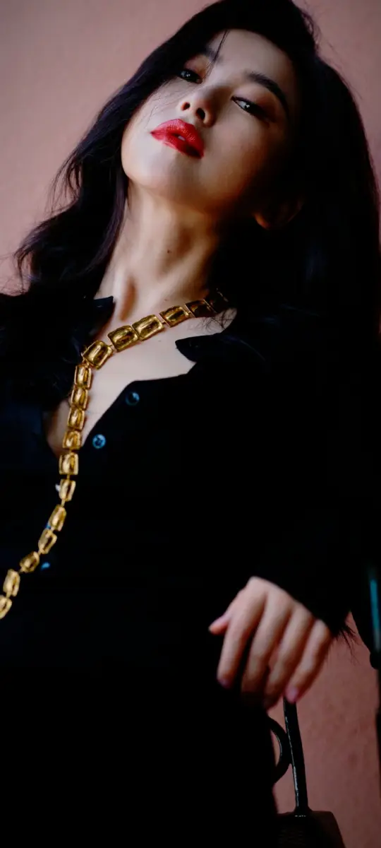 7月18日,朱珠(明星經(jīng)紀公司)一組造型寫真釋出,黑發(fā)紅唇搭配金色項鏈,嫵媚又張揚。