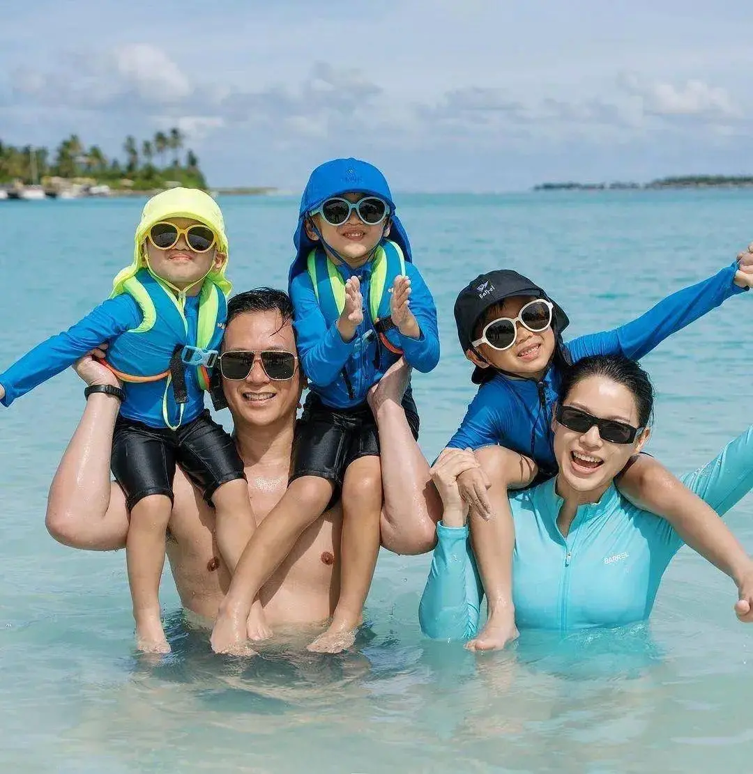 胡杏兒一家五口到海邊度假,48歲老公半裸好壯碩,三個兒子好可愛
