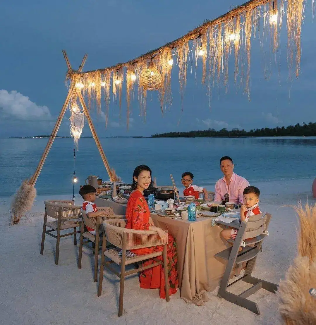 到馬爾代夫旅游,自然少不了去海邊玩。從胡杏兒曬出的照片能夠看到,他們一家五口在海邊玩得很開心。