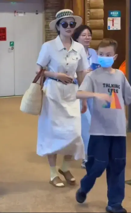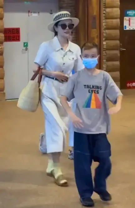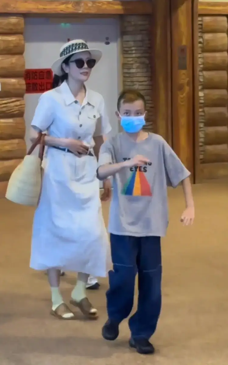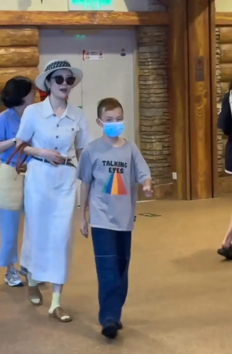楊樂(lè)樂(lè)帶兒子出門游玩 9歲小沐沐眉眼神似汪涵