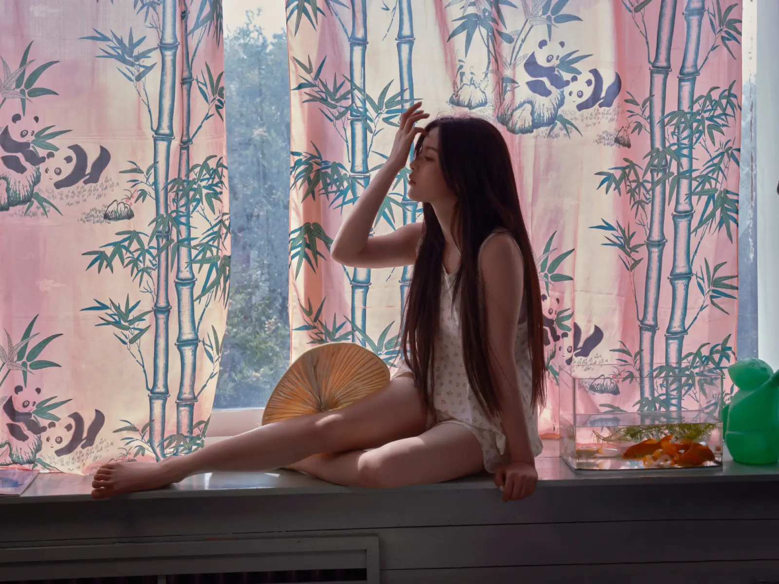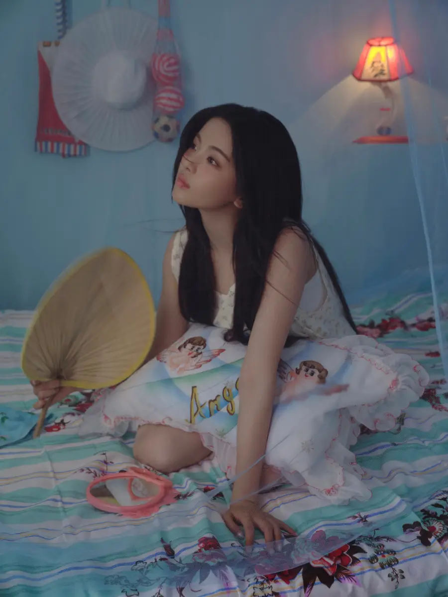 楊超越坐在窗邊搖蒲扇,秀發(fā)飛揚(yáng),美貌在線。