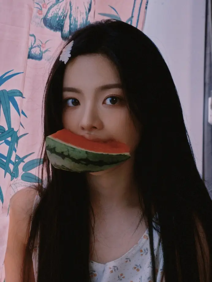 楊超越咬著西瓜,一雙靈動(dòng)大眼炯炯有神。