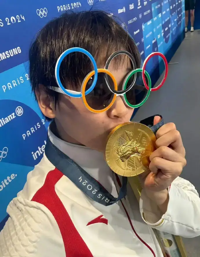 全紅嬋陳芋汐舉獎牌搞怪自拍 戴五環(huán)墨鏡調皮可愛