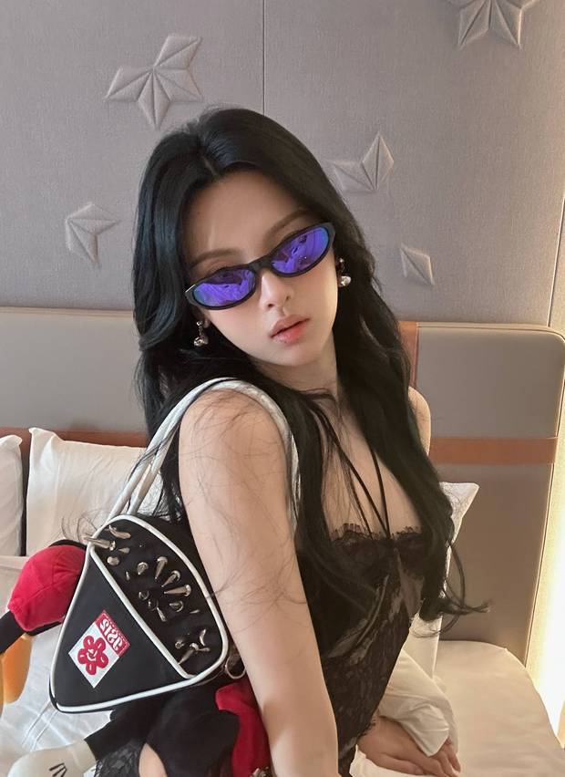 楊超越頭戴鐳射墨鏡。