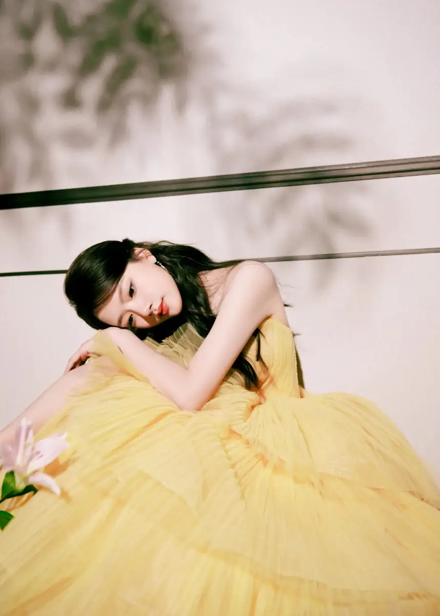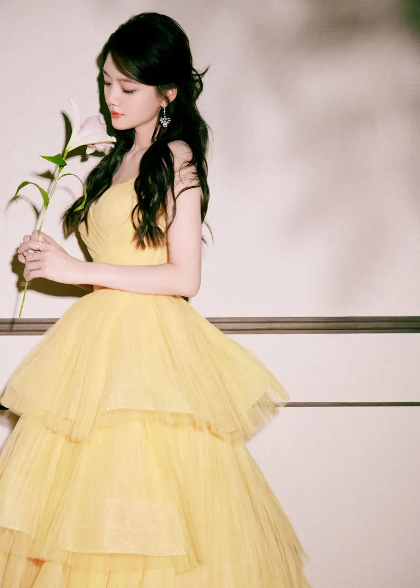 任敏穿上淡黃禮裙明媚動(dòng)人。