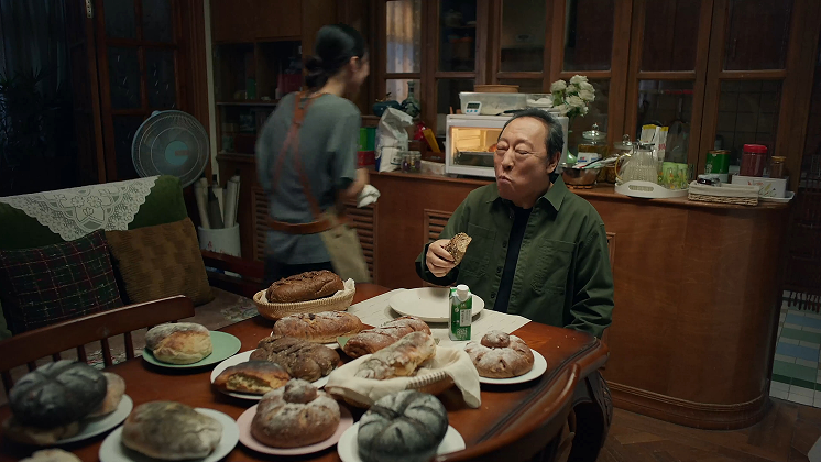 在影片中,倪大紅老師扮演了一位不善表達(dá)的父親,為新來的姑爺送上搟面杖、成為敢于面對蟑螂的唯一前線、面無表情的吃下女兒做的干巴面包......但這一切都是表象,爸爸內(nèi)心的 OS 早已出賣他深愛孩子的事實。都說父愛如山、父愛無言,但這并不意味著爸爸的愛比任何一個人少,伊利希望借助短片將那些未曾開口的愛表達(dá)出來,正如品牌牛奶無聲滋養(yǎng)著無數(shù)消費者一樣,父親也以另一種方式愛著大家。