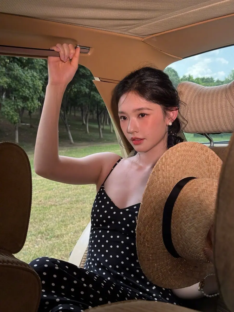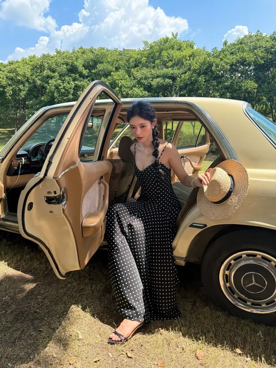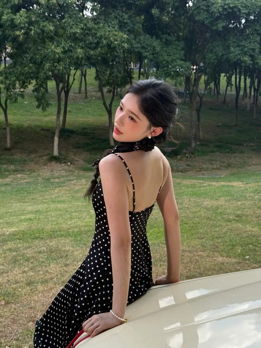 27日,林允(明星經(jīng)紀(jì)公司)在社交平臺(tái)上曬出一組戶外美照,她身穿黑色波點(diǎn)吊帶長(zhǎng)裙,站在車?yán)锾匠錾碜优恼?,狀態(tài)松弛,美貌養(yǎng)眼!