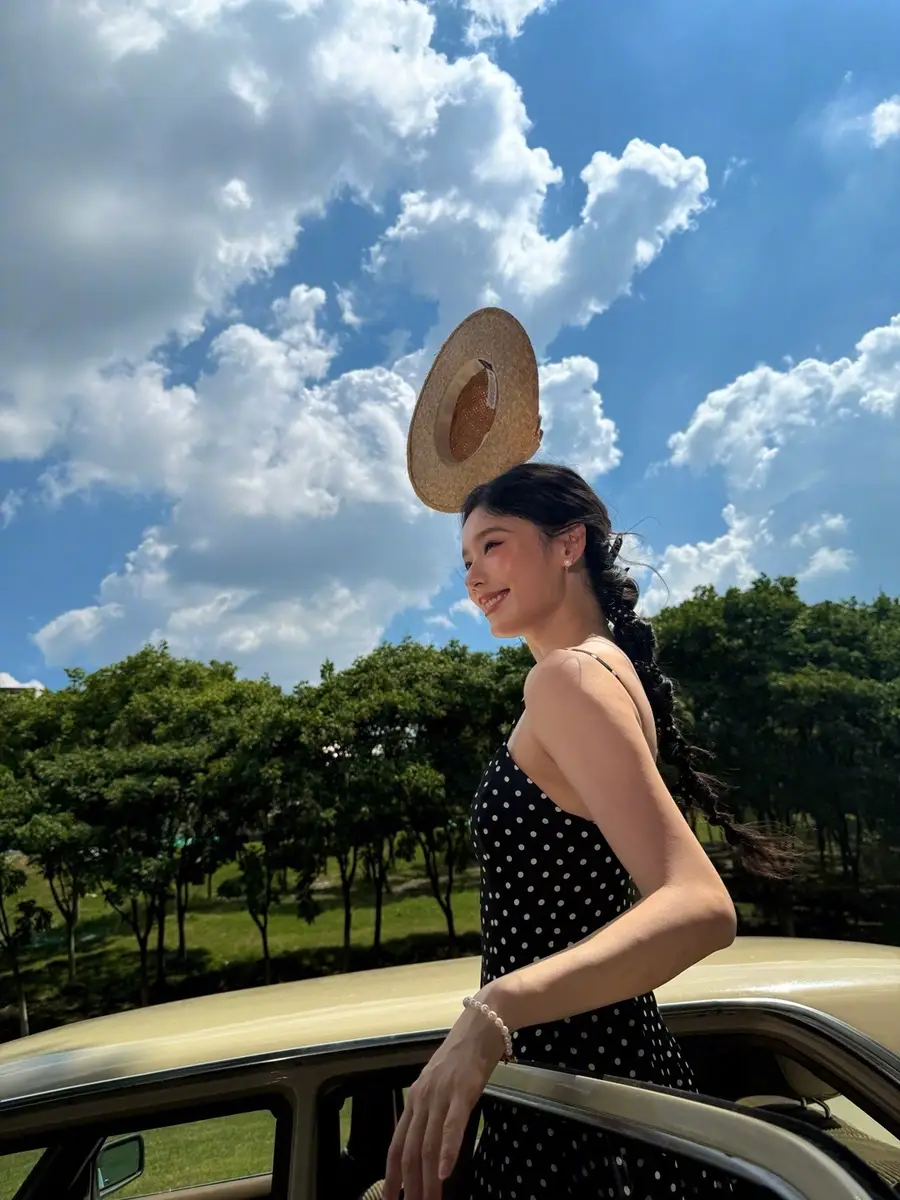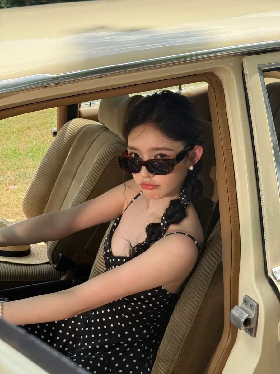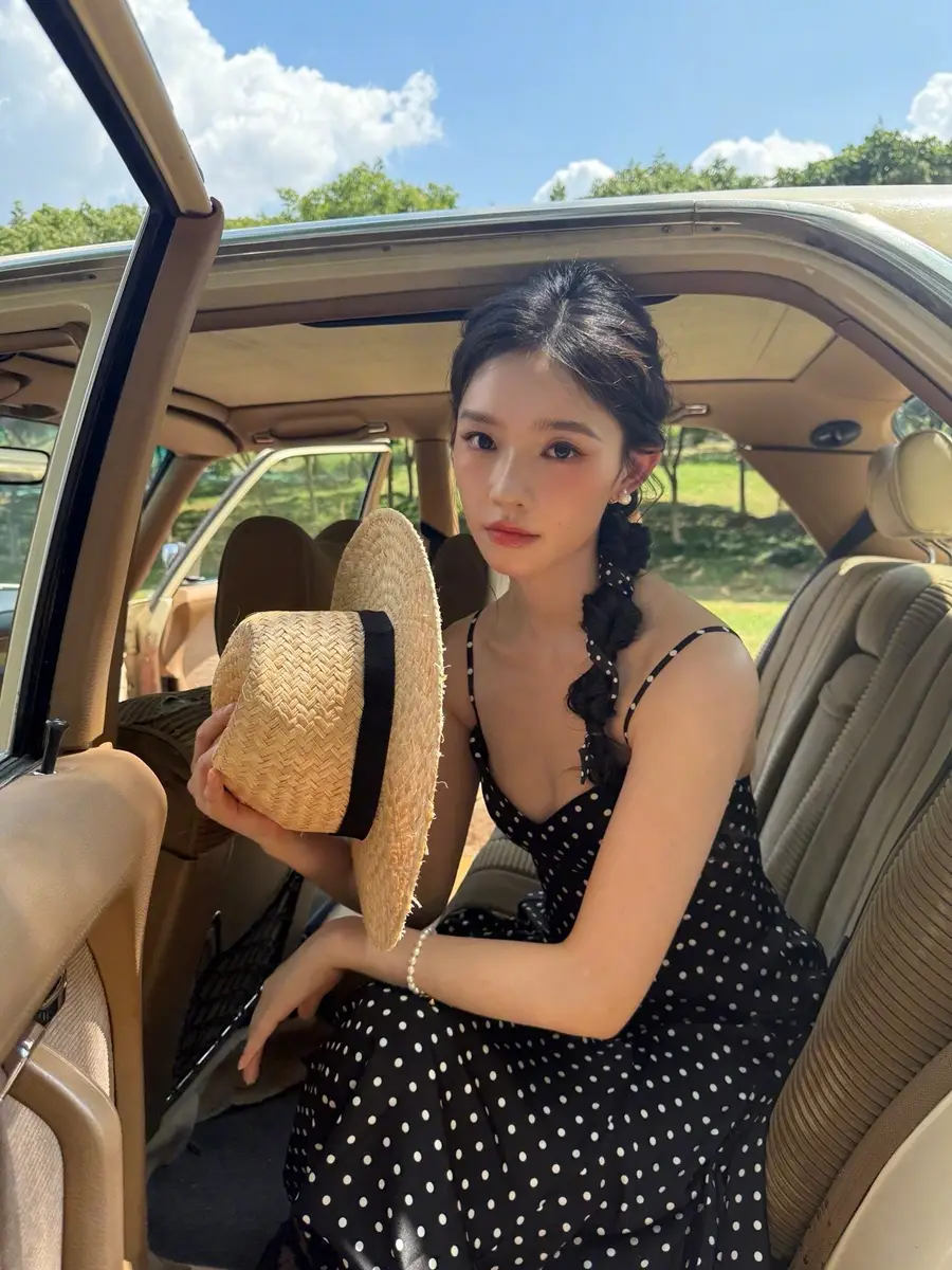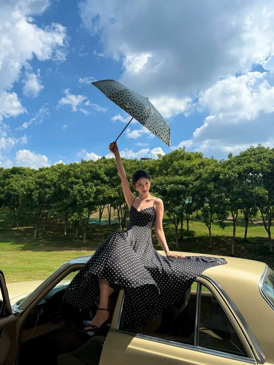 27日,林允(明星經(jīng)紀(jì)公司)在社交平臺(tái)上曬出一組戶外美照,她身穿黑色波點(diǎn)吊帶長(zhǎng)裙,站在車?yán)锾匠錾碜优恼?,狀態(tài)松弛,美貌養(yǎng)眼!