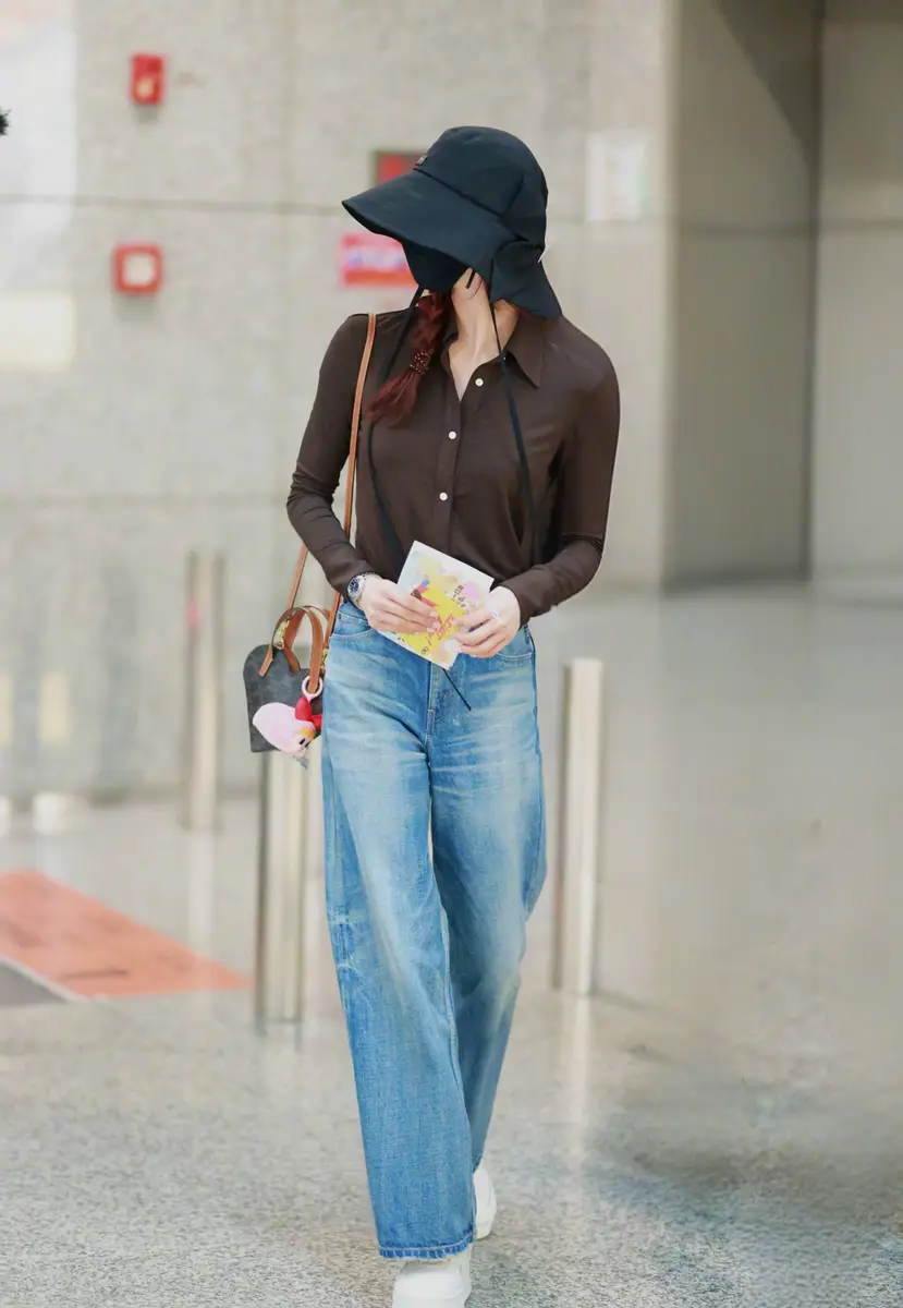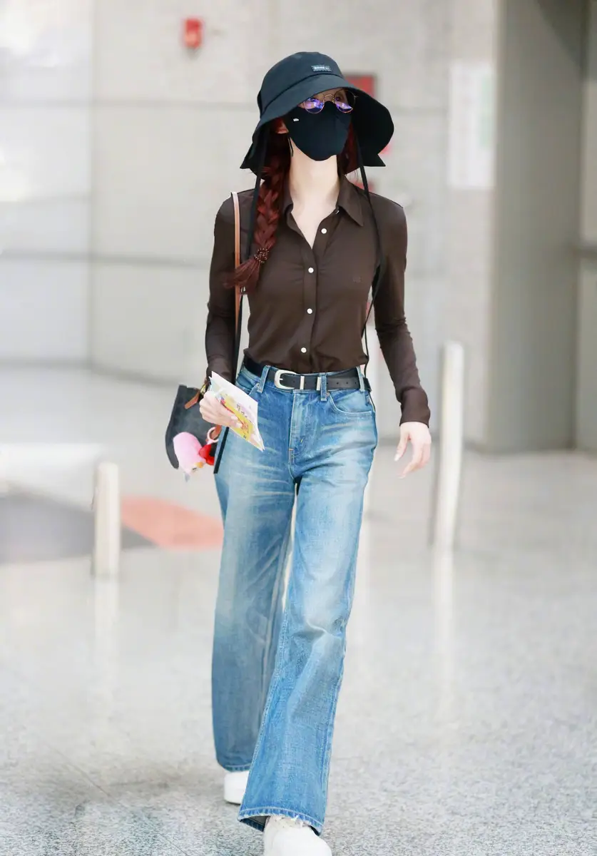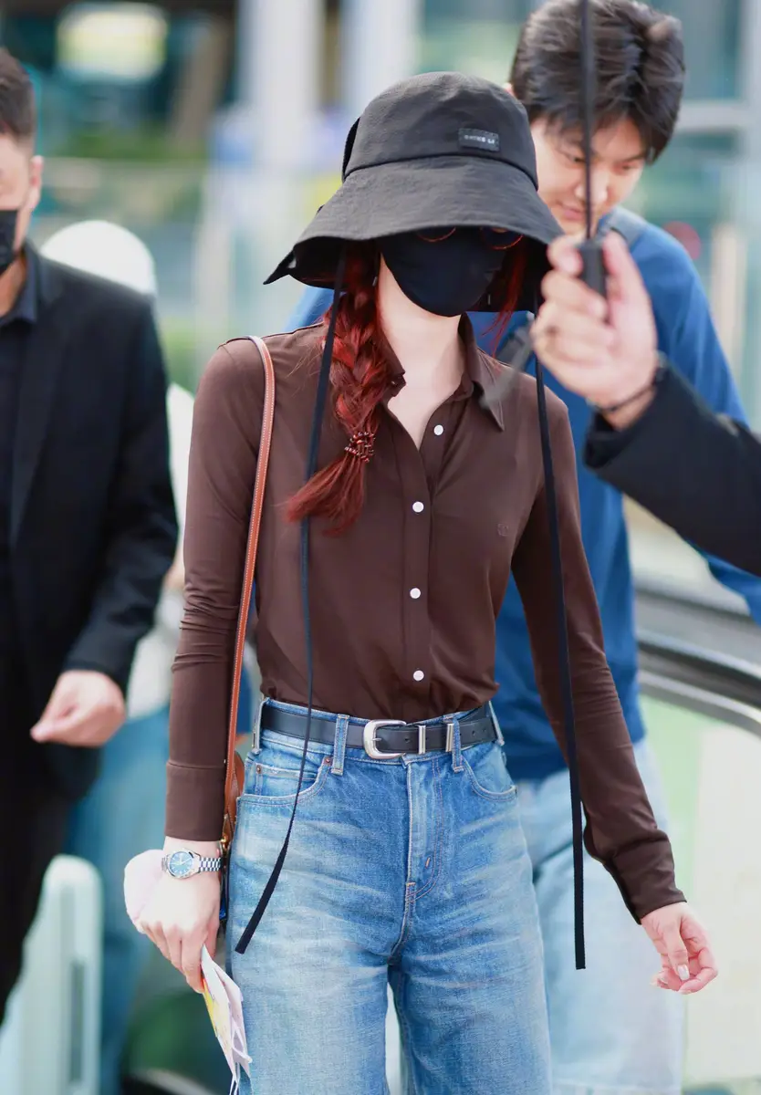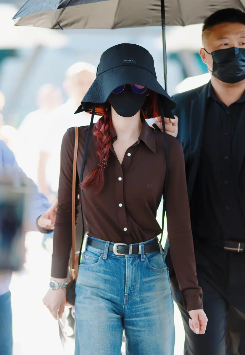 劉詩詩染紅發(fā)造型驚艷 棕色襯衫搭配牛仔褲又酷又颯