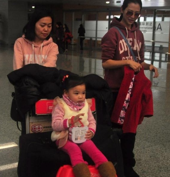 2014年02月19日上海,早前蔡少芬?guī)е鴲叟靶珗A”張楚兒現(xiàn)身機(jī)場。當(dāng)日,蔡少芬戴著黑超推著行李走出機(jī)場,女兒“小湯圓”張楚兒則是坐在行李車上可愛的玩耍,看到有人偷拍,萌娃也是很有鏡...