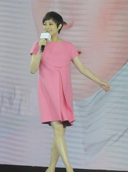 2014年02月19日上海,19日,孫儷粉裙出席活動,剛剛宣布再次懷孕的孫儷不懼危險(xiǎn)踩高跟鞋亮相。