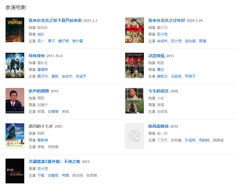 代表作品:追、鐵梨花、勇敢的心、火藍(lán)刀鋒、大秧歌、將軍、打狗棍、紅娘子、最美的鄉(xiāng)村