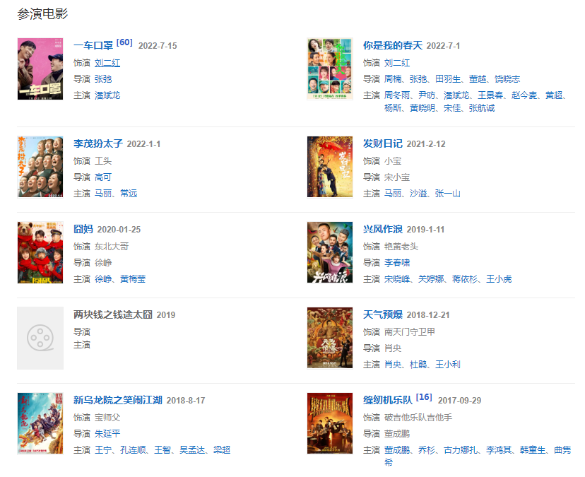 2022年1月,參加2022年北京廣播電視臺春節(jié)聯(lián)歡晚會錄制。 2月1日,參加2022年北京廣播電視臺春節(jié)聯(lián)歡晚會,參演小品《這世界那么多的人》;1月30日,參加《2022年遼寧衛(wèi)視春節(jié)聯(lián)歡晚會》;2月1日,參加《2022年東方衛(wèi)視春節(jié)聯(lián)歡晚會》;同年,主演抗疫電影《你是我的春天》。