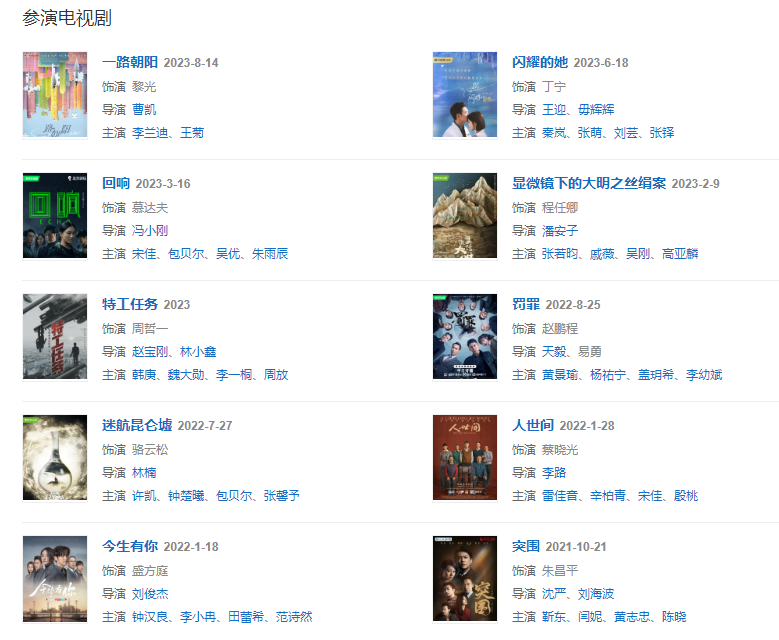 2022年1月18日,主演的都市情感電視劇《今生有你》播出 ;1月28日,參演的現(xiàn)實(shí)主義題材大劇《人世間》播出 。
