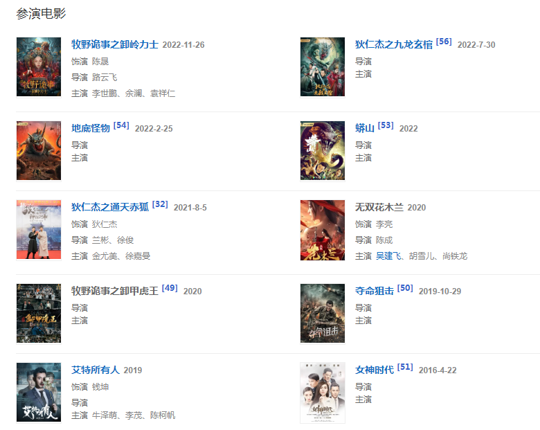 代表作品:愛情萬萬歲、哪咤降妖記、盜墓筆記、老男孩