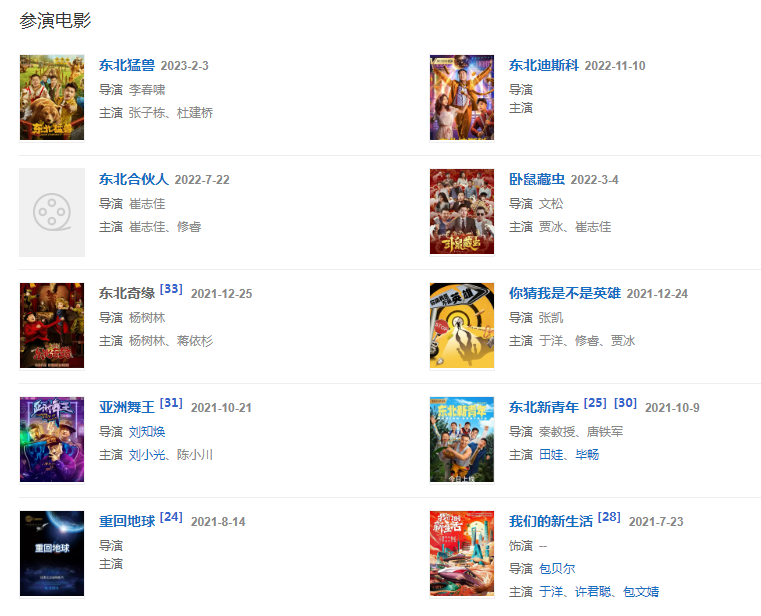 2022年3月4日,執(zhí)導(dǎo)并主演的喜劇電影《臥鼠藏蟲》在全國(guó)公映;1月30日,參加《2022年遼寧衛(wèi)視春節(jié)聯(lián)歡晚會(huì)》。