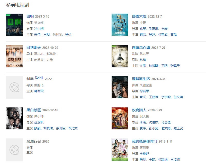 2003年因在電視劇《別動(dòng)我的抽屜》飾演李濤而出道。2008年憑借《復(fù)活的三葉蟲》中齊小滿一角在第16屆大學(xué)生電影節(jié)獲得“最受歡迎男演員”提名。2010年在電影《決戰(zhàn)剎馬鎮(zhèn)》飾演綠毛褲。2011年在電影《畫壁》中飾演書童后夏。 2013年包貝爾憑借電影《致我們終將逝去的青春》張開一角獲得第4屆樂視盛典電影飛躍男演員獎(jiǎng) 。2013年5月出演喜劇電影《臨終囧事》。 2014年在古裝電視劇《大漢情緣之云中歌》中飾演長(zhǎng)安第一帥哥劉賀。 2015年9月25日,參演喜劇電影《港囧》。12月,包貝爾執(zhí)導(dǎo)古裝電視劇《歡喜密探》 。2016年包貝爾與母親包鋒加盟真人秀《旋風(fēng)孝子》 ;同年7月15日,主演的電影《陸垚知馬俐》上映。 2017年,包貝爾監(jiān)制并主演科幻喜劇《歡喜獵人》。 2018年,包貝爾出品的網(wǎng)絡(luò)大電影《暴走狂花》上線;同年自編自導(dǎo)的喜劇片《胖子行動(dòng)隊(duì)》于9月30日上映。2019年1月10日,主演的犯罪動(dòng)作電影《“大”人物》上映。2020年9月11日,與辛芷蕾領(lǐng)銜主演的喜劇電影《我的女友是機(jī)器人》上映 。2020年,出演現(xiàn)實(shí)題材電影《勇敢的你》 。2021年2月11日,參加《2021年中央廣播電視總臺(tái)春節(jié)聯(lián)歡晚會(huì)》并表演小品《開往春天的幸?!?/span>