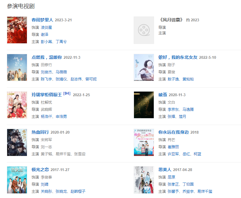 代表作品:花千骨、重生之名流巨星、麻辣變形計(jì)、思美人、極光之戀、新龍門客棧