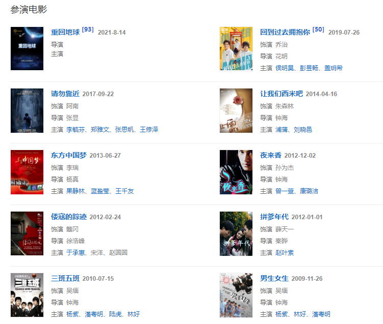 2009年,與楊紫等主演鐘海執(zhí)導(dǎo)的電影《男生女生》。