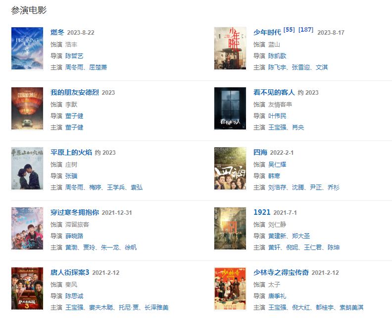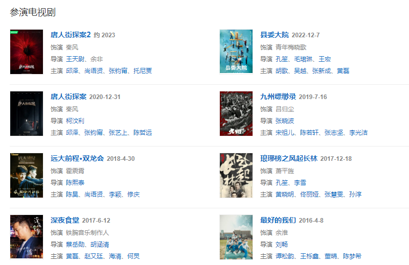 代表作品:唐人街探案、北京愛(ài)情故事、最好的我們、瑯琊榜之風(fēng)起長(zhǎng)林、九州縹緲?shù)?、唐人街探?/span>2、唐人街探案3、一點(diǎn)就到家