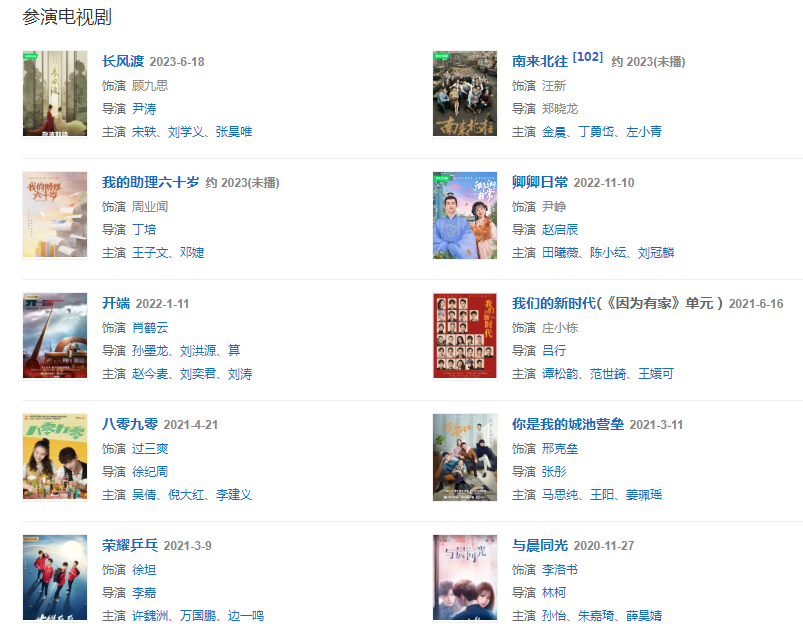 代表作品:開端、你是我的城池營壘、平凡的榮耀、夏至未至、旋風少女、匆匆那年、誰的青春不迷茫
